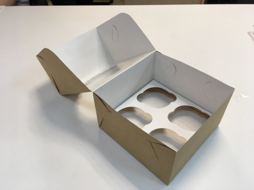 Коробка на 4 капкейка из картона с крафт-оборотом с окном
